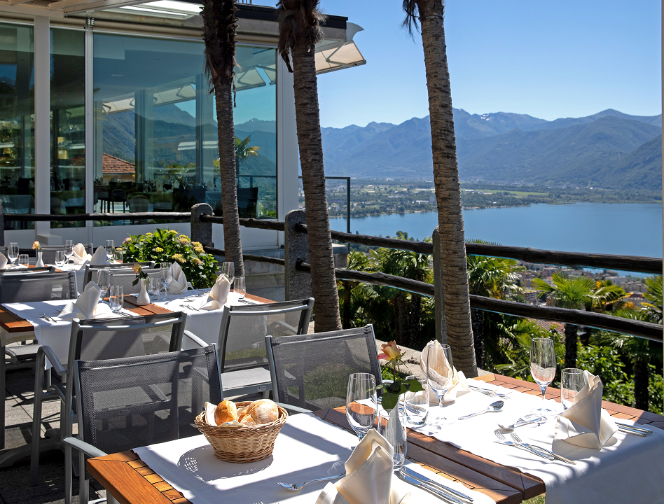 Notre cuisine privilégie les produits régionaux et les ingrédients de saison. Le restaurant, doté d’une grande baie vitrée, offre une vue panoramique sur le lac Majeur, tout comme la terrasse ensoleillée attenante. Outre les spécialités tessinoises, vous trouverez des plats internationaux ainsi que des options végétariennes, véganes et adaptées aux personnes allergiques.